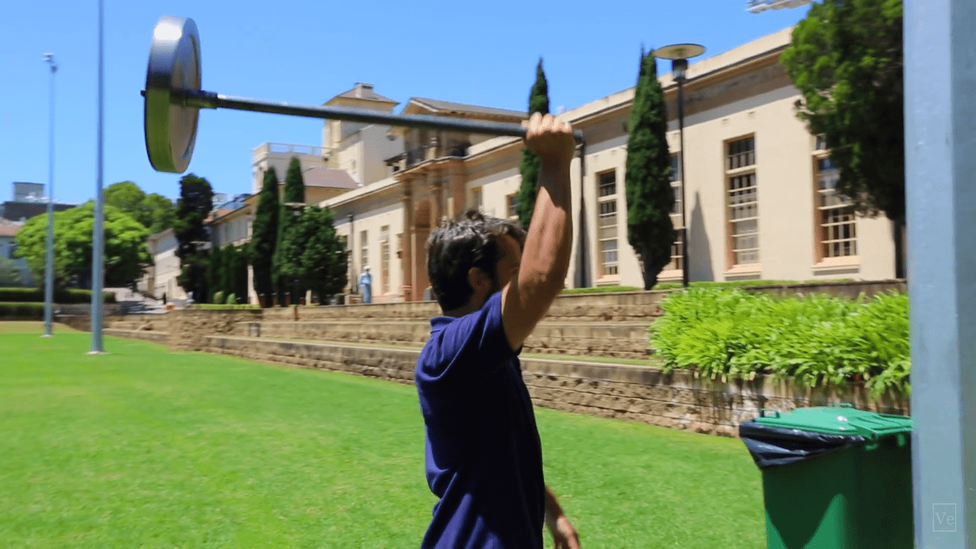 观看这个家伙用反重力轮用一只手举起20公斤