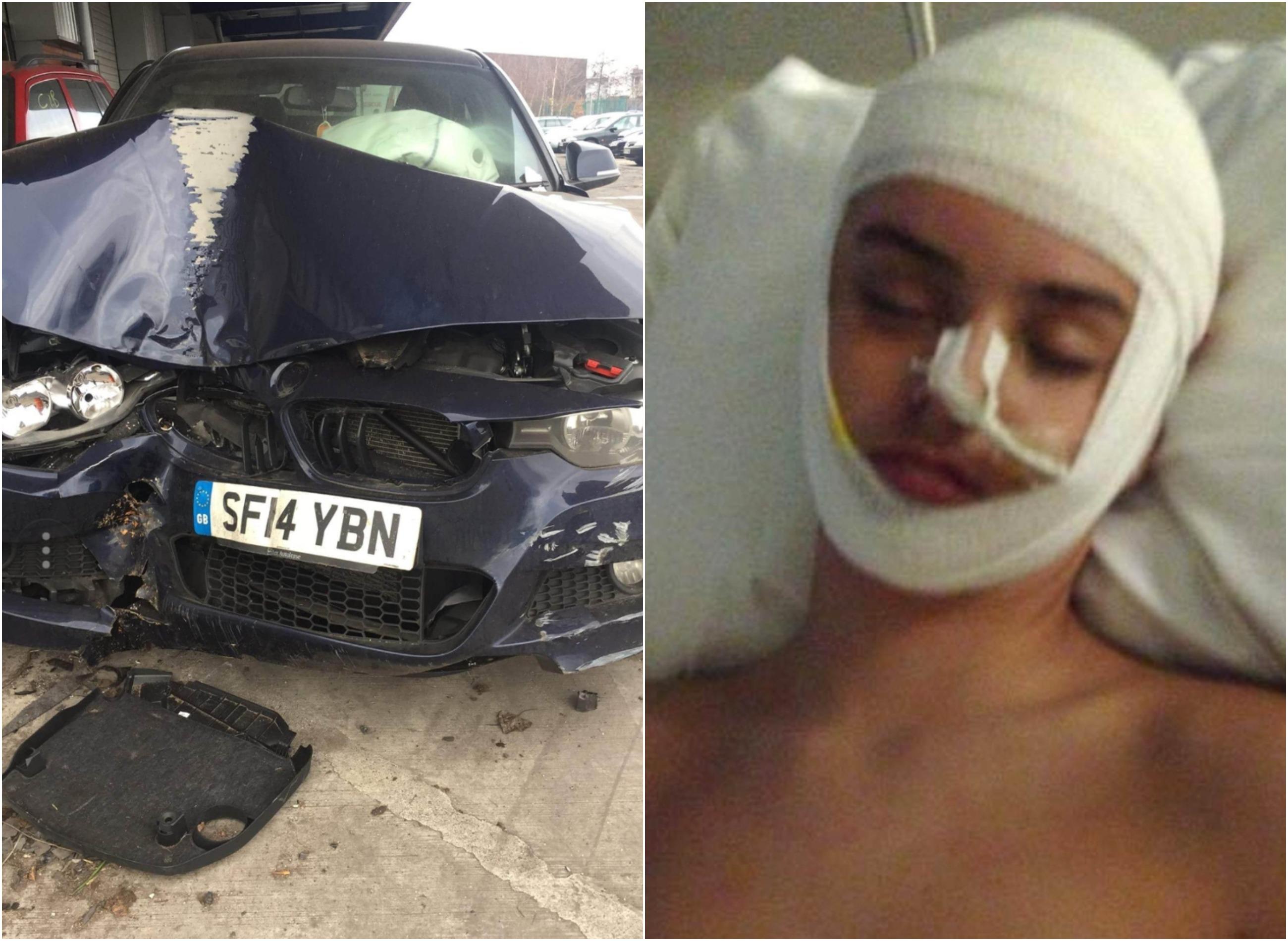 一个男孩,14岁,来自谢菲尔德,英格兰,度过了一个可怕的车祸后遭受骨折……