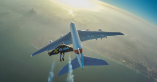 看:低空跳伞的喷气背包飞与世界上最大的客机