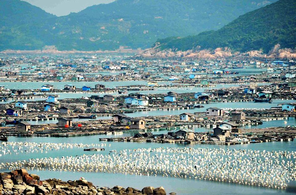 中国这些独特的浮动养鱼场提供世界上三分之二的海洋食品