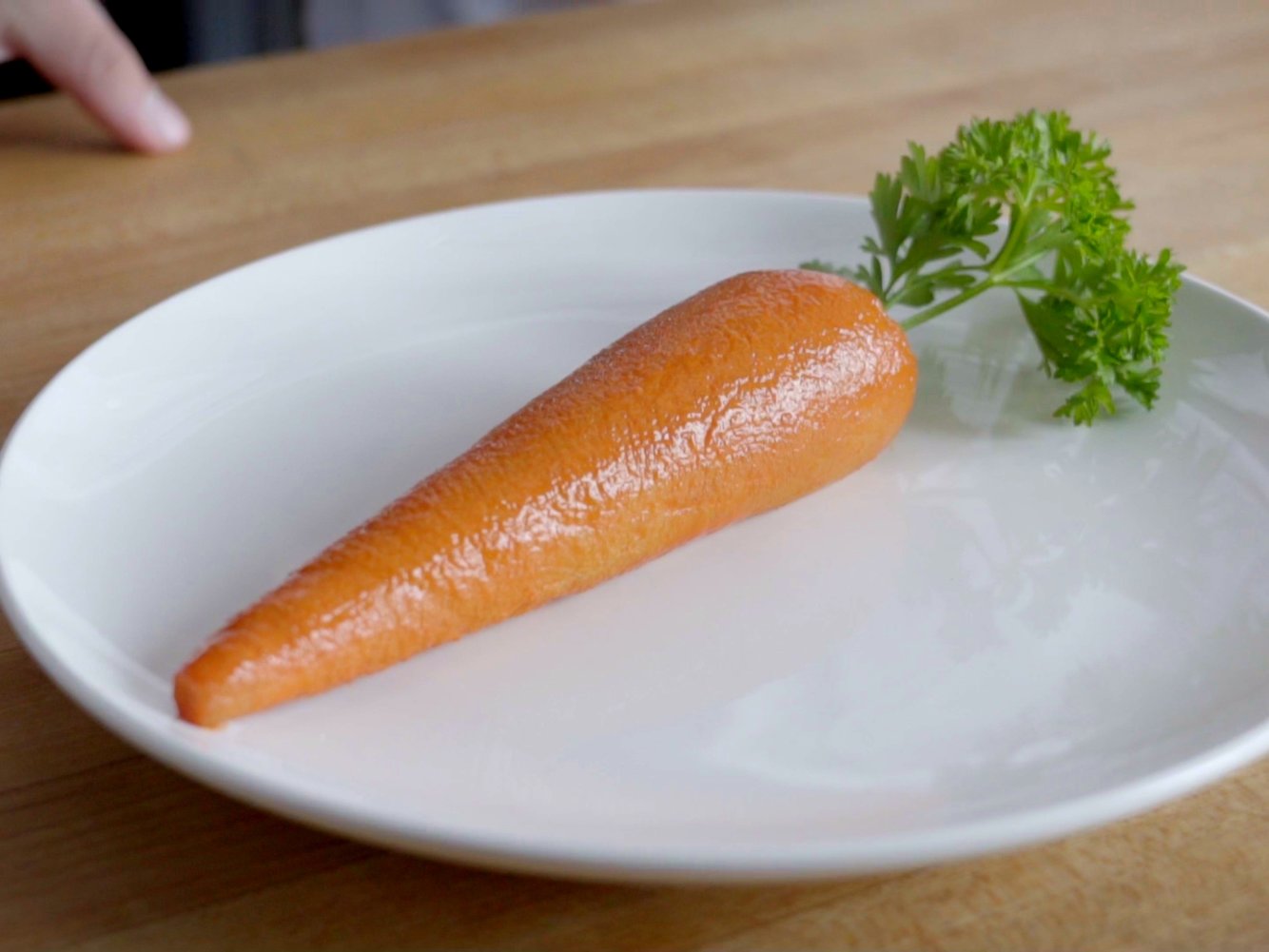 这个胡萝卜是用肉制成的,但味道就像真正的蔬菜
