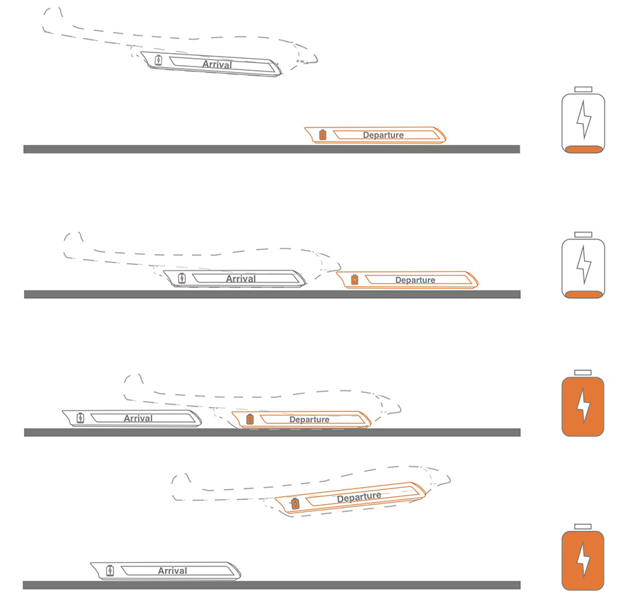 Horizon可能是世界上第一个全电动平面,因为它的独特设计使这架无人飞机在飞机中被安装在吊舱中的电池飞机时,从而在沿着轨道沿轨道骑行时充电。同样令人惊奇的是,飞机在下车并捡起乘客手推车时永远不会碰到地面。地平线有一个休息室,商务区,零售空间和一个天空吧,可从内部提供壮丽的景色,这就是为什么一旦乘客在豆荚附着在地平线上时,乘客就安全地在空中,鼓励他们四处走动并弯曲他们在那里的时间。