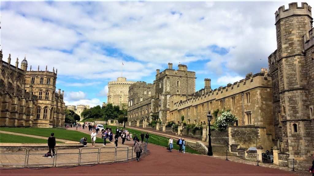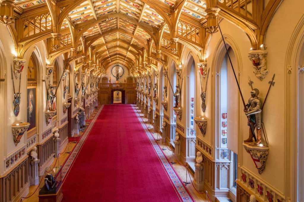 在12世纪,亨利二世将城堡从其小而简单的建筑设计重建为宏伟的城堡。他用石头圆塔和东部,北部和南部的外部石窗帘墙代替了原始建筑。到13世纪,这座城堡是既定的皇家住所。连续的国王融入了自己的触感;亨利三世(Henry III)添加了一座名为宵禁塔的大塔,而爱德华三世(Edward III)则增加了巨大的诺曼门(Norman Gate)和著名的圣乔治大厅。后者今天仍然用于其最初的目的:吊袜带勋章的骑士,骑士秩序Edward III成立。大厅的亮点是圣乔治教堂,今天可以参观,并经常举行敬拜。
