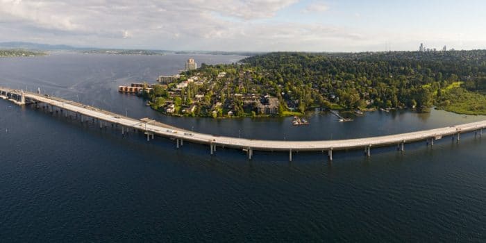 漂浮的桥梁与其他更传统的桥梁结构完全不同,因为它们放在浮桥或驳船上,这些桥梁或驳船基本上漂浮在水面上,而不是将其牢固地固定在下面的土壤中,这是一种从临时浮桥开发的方法,该方法是由临时的浮桥开发的。军队。华盛顿湖的深度和下面的柔软的灰色土壤使建造传统的桥梁是不切实际的,因此这座浮桥是解决方案。