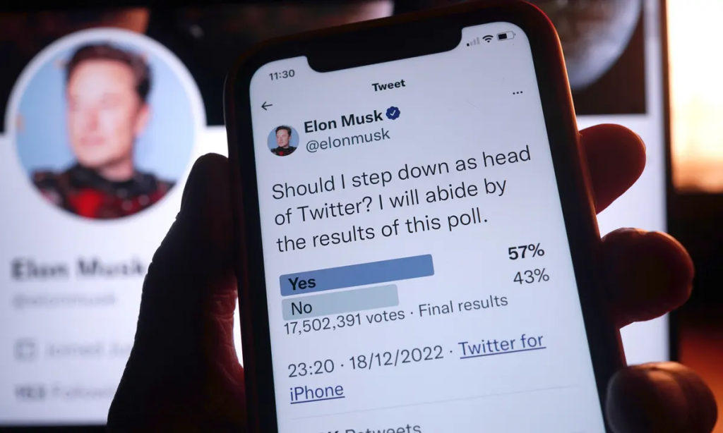 麝香,民意调查结果,表示他将辞去Twitter的CEO只要找到合适的替代。