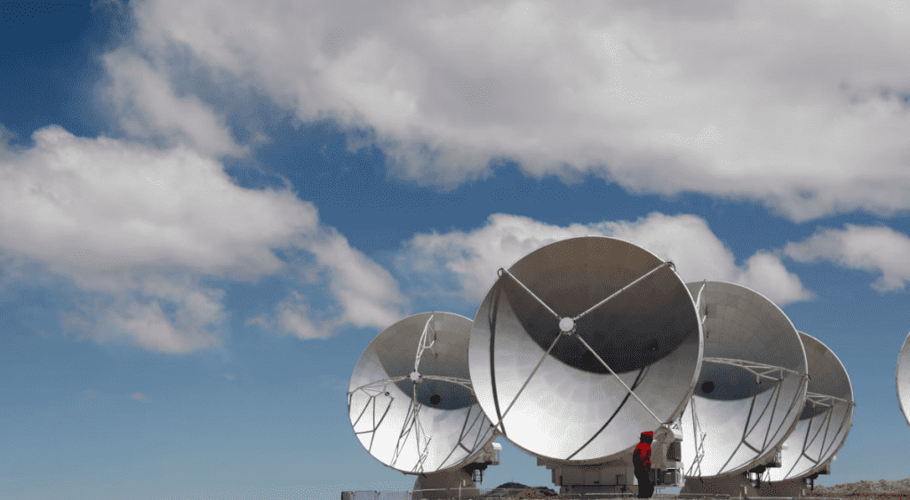 根据ESO的说法,ALMA望远镜有66个高精度天线,分布在长达16公里(10英里)的距离上,使它能够探测到在可观测宇宙边缘形成的遥远星系。