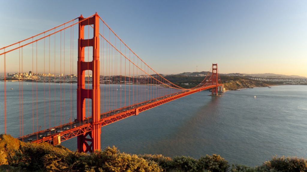 金门大桥可能是世界上最具标志性的桥梁,自1937年开通以来,其深橙色的跨度横跨金门海峡。当时,它是世界上最长和最高的吊桥,主跨度为4200英尺(1280米),总高度为746英尺(227米)。今天,这座桥是旧金山和加利福尼亚州最受国际认可的象征之一。