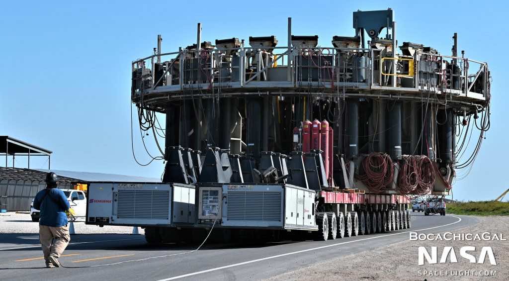 我们通常看不到可以在发射前火箭测试中使用破碎机,即使这已经进行了一段时间。而且我相信,在视频中放气时,在发射台上移动的设备的奇异性。