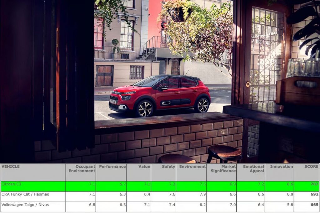只有3个条目在2023年世界城市汽车类,三个(雪铁龙C3、ORA的猫/ Haomao和大众Taigo / Nivus)都成为决赛选手。