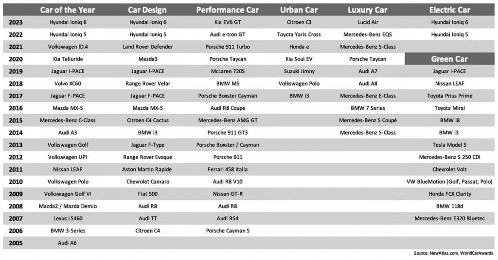 采用特定的方法,每个类别都经过精心挑选的三名选手。随后,赢家是受到100多名著名记者测试和评估不同类别的所有竞争者。进入决赛的名单表明只有顶尖的汽车最终获得一个领奖台的位置。