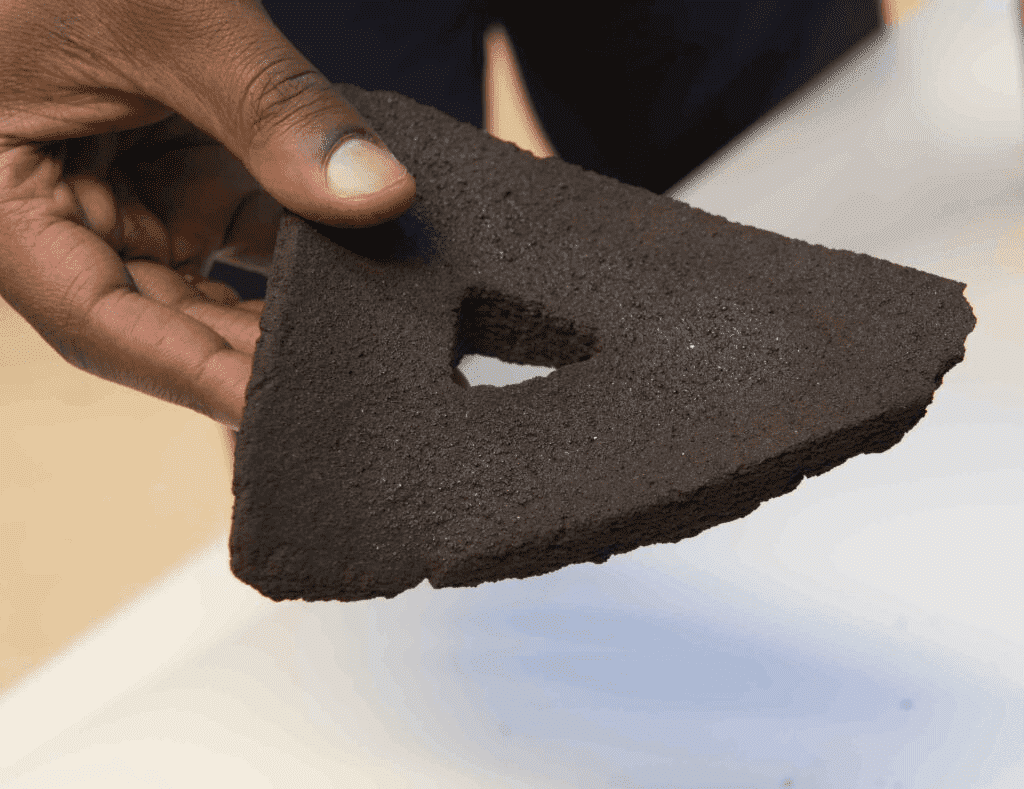 研究人员结合3D打印和粘合剂喷射技术(BJT)制作了砖块。Ghosh解释说:“BJT特别适用于难以用激光熔化的陶瓷类材料。”“因此,以风化岩为基础的地外制造以可持续的方式生产零部件、组件和建筑结构具有巨大的潜力。”