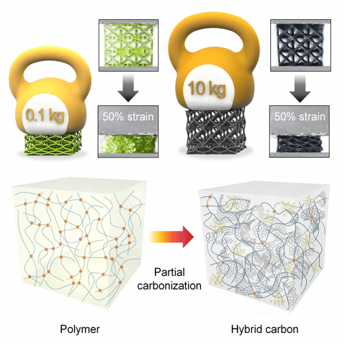 另一方面,研究人员不仅希望开发这些微晶格,而且还希望通过升级其强度和延展性来提高它们的效率。为此,他们纳入了称为“热解”的方法。在研究期间,卢阳教授遇到了一种“魔术般”现象,该现象自动将这种聚合物的强度提高了100次,并且也导致其延展性增加了两倍。