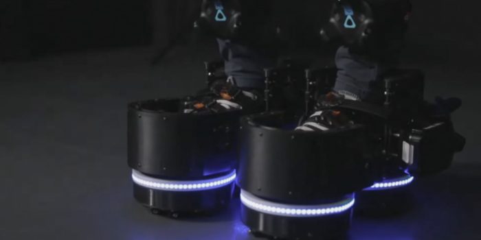 这种靴子由一组电动轮子组成,它们的旋转方向与穿着者前进的方向相反。这些设备可以让使用者在现场行走,就像在跑步机上一样,给他们一种向前移动的感觉。这款靴子与虚拟现实头盔一起使用。整个体验将给虚拟设定一个现实的感觉。