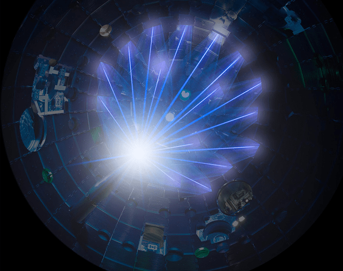 一组科学家在劳伦斯利弗莫尔国家实验室的国家点火装置在加州的突破在12月5日在一个体育场大小的设备,配备192激光。