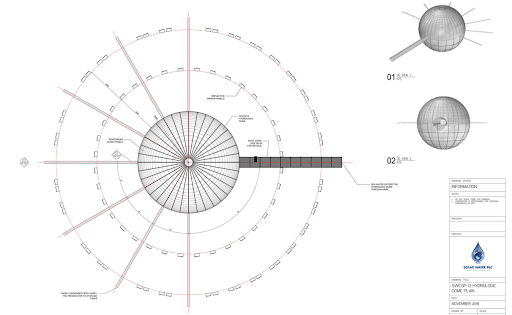 太阳圆顶植物基本上是“埋在地下的钢锅,上面覆盖着圆顶”,从而使巨型球的外观。玻璃圆顶被反射内部太阳辐射的Heliostat反射器包围。辐射用于加热圆顶内的海水,从而蒸发并凝结形成淡水。根据太阳能水首席执行官David Reavley的说法,该技术便宜,快速建造和中性碳中性,因为它不利用像其他脱盐技术这样的污染纤维。