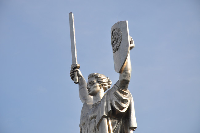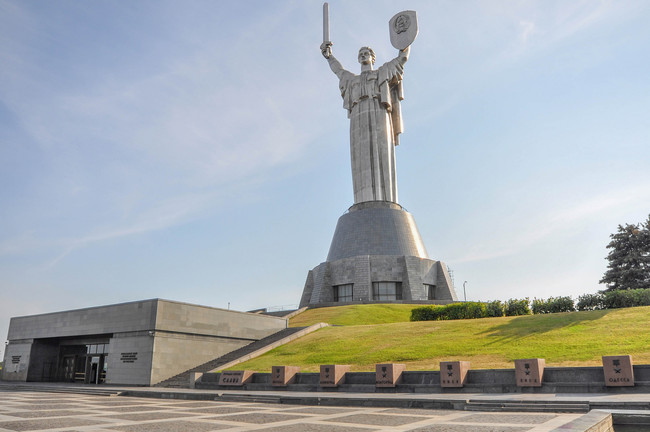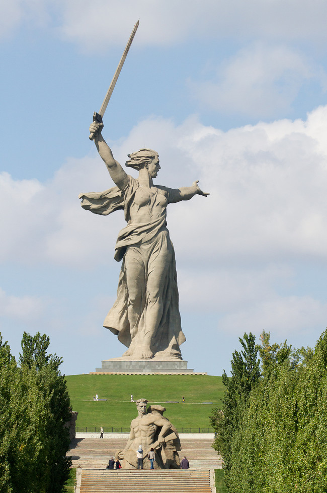 这座雕像是1981年作为战争纪念碑建造的。雕像右手的剑重达9吨,左手的盾牌上有苏联的标志。