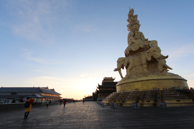 这座雕像位于峨眉山的顶峰中国佛教四大神山中最高的一座。