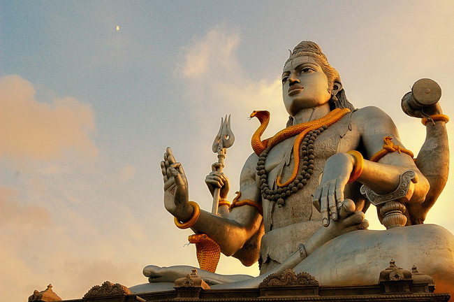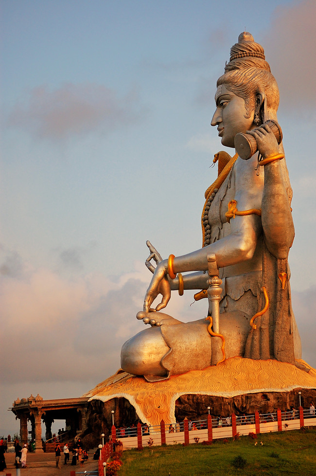 湿婆神高耸的雕像有123英尺高,它的设计可以让阳光直射,因此产生了闪闪发光的效果。据说它是用黄金装饰的,直到雨水溶解了颜料。