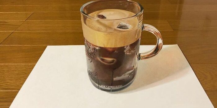 这位年轻的艺术家遵循了一种古老的绘画技巧,叫做Trompe l ' oeil(法语翻译为“欺骗眼睛”),字面意思是欺骗观众,可以说Keito已经掌握了这种技巧,让人们怀疑自己看到的是一幅画还是一件实物。从一杯冷咖啡到一颗闪亮的宝石,Keito的画从纸上脱颖而出(字面上的!),你第一眼可能会认为这是一个真实的物体。Keito不仅是着色方面的专家,他甚至可以重建不同物体的纹理,以创造完美的错觉。真是伪装大师啊!