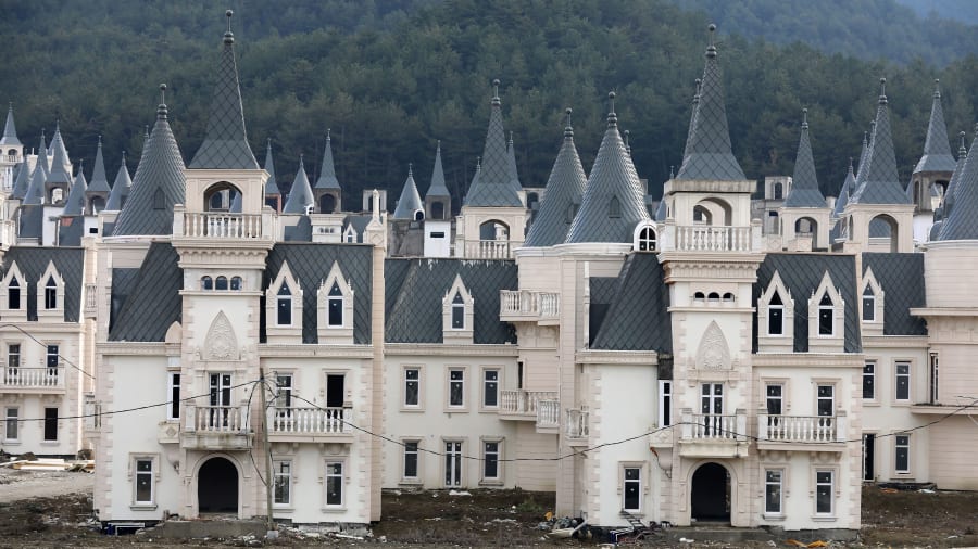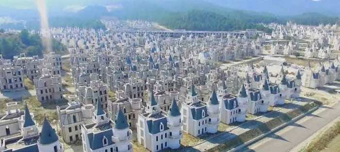 它位于土耳其Bolu的Mudurnu镇附近。它应该是一个广泛的商业物业地区,人们拥有他们的别墅或豪宅,他们只用来度假。关于它们的最有趣的事情是,它们都以相同的方式建造,这是迪士尼城堡的建造方式。它们的结构都相似,数量大约超过700,并且现在被放弃了,现在已经半完成了。