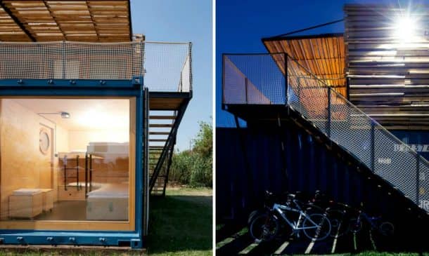 这家集装箱酒店目前位于捷克共和国的Treboutice,完全自给自足,环保。它可以很容易地拆卸和重新组装在任何其他位置。该建筑还可以连接外部电源,并有一个设计良好的蓄水池,可以持续供应淋浴和水槽,并配有节水水龙头。酒店还使用了由木板制成的遮阳篷,以节省供暖和制冷成本,并在夏季提供阴凉。