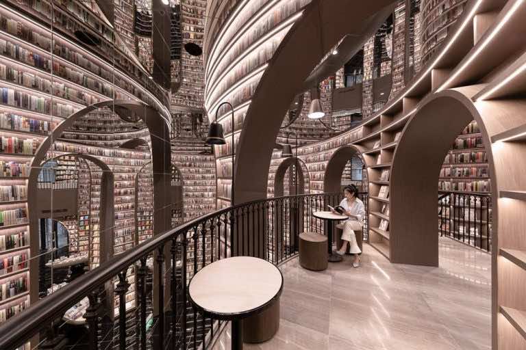 由上海建筑工作室X+Living的创始人Li Xiang设计,令人着迷的建筑占地10,500平方yabo168vip com英尺。这个令人惊叹的地方在2020年秋天为书籍爱好者打开了大门。使用螺旋式楼梯,弯曲的拱门和巧妙地放置的镜子,这家雄伟的书店的创造者充满了幻想,能够灌输永无止境的无限无限 -喜欢书店里的感觉。瞥见Dujiangyan中央棚的照片,使观众感觉好像从另一个世界看到了一家书店。它令人着迷,雄伟,无限,想象力可以徘徊。