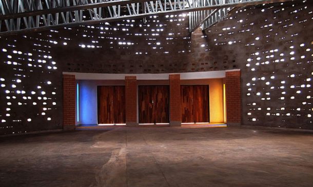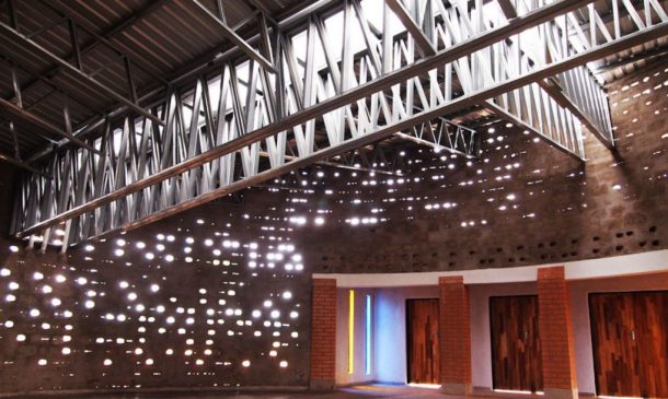 整个立面都有小孔,以确保自然采光和通风。教堂的屋顶形状像基督教的十字架,覆盖着半透明的屋顶板,可以提供更好的照明。令人惊讶的是,整个项目只花了3.5万美元。很酷,不是吗?