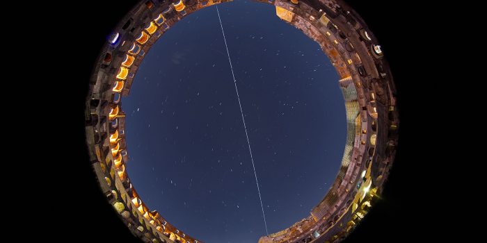 虚拟望远镜项目,由天文学家吉安卢卡·马西,配合帕可Archeologico del斗兽场捕捉国际空间站旅行在12月6日的罗马圆形大剧场。图像是一种野生仰视图,历史性的圆形剧场的墙壁出现在一个圆和国际空间站(ISS)可见的条纹光在夜空中。