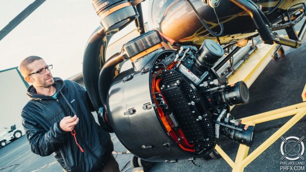 拍摄这段录像不是很小的壮举。荷兰使用了三个带有Tokina 35mm T1.5的红色武器8K VV Monstro摄像机。这些摄像机安装在Shotover K1 Hammerhead Gyro stabilized世界中。将摄像机仔细对准并同步以充当单个控制单元,整个设置都被操纵到直升机上。