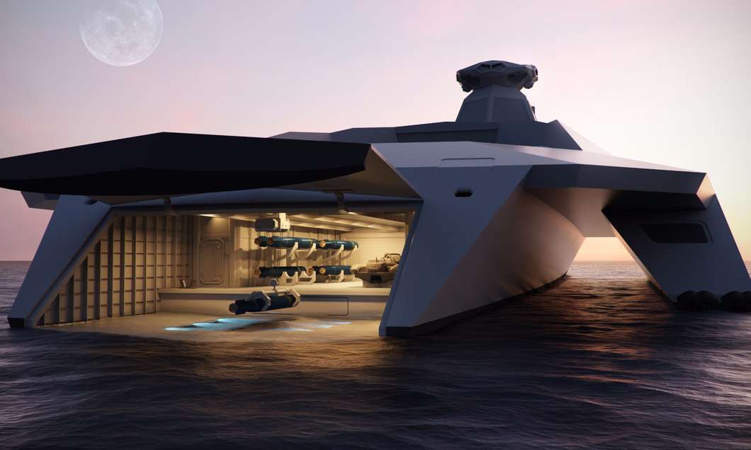 这艘船将有无限的范围由于其融合基础引擎。如果船是开发,它将高效涡轮推进50节或92公里/小时。四轴飞行器无人机总是徘徊在船上拿下敌人导弹和激光武器和多光谱传感器基于武器。