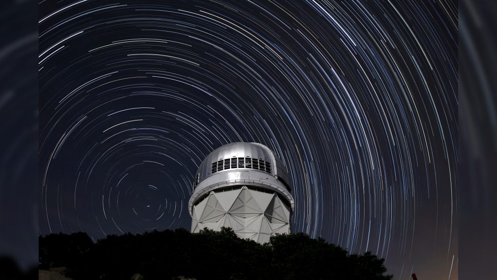 暗能量光谱仪器(DESI)于2015年至2019年安装在索诺兰沙漠凯特峰国家天文台的Mayall望远镜上,该天文台位于图森以西约50英里(88公里)处。这是加州劳伦斯伯克利国家实验室和来自世界各地的科学家之间的合作。在不到一年的时间里,它一直在进行一项调查。它的目的是创建一个更大的宇宙3D地图,以了解更多关于暗能量的知识,暗能量是驱动宇宙膨胀的神秘力量。