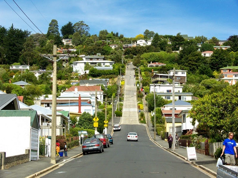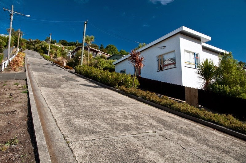 鲍德温街位于新西兰达尼丁市,被认为是世界上最陡峭的街道。这是一条开始坡度适中的街道,并进一步达到19度的最大坡度。