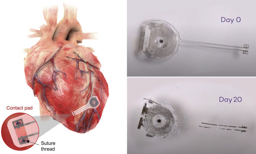 Arora说:“我们可以植入这种无铅生物相容的起搏器,而不是使用可能被感染和脱落的电线。”“电路直接植入心脏表面,我们可以远程激活它。在几周的时间里,这种新型的起搏器“溶解”或自行降解,从而避免了需要进行物理去除起搏器电极。对于术后患者来说,这可能是一次重大胜利。