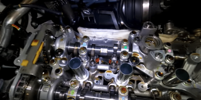 顶点决定脱下引擎,wrong-shift导致丰田的保修无效,和损失显而易见阀盖移除。overrev导致一个进气阀门浮动,和活塞迫使阀,阀弹簧上的摇臂,迫使倒塌。这卡打开阀门导致气缸的压缩的损失。