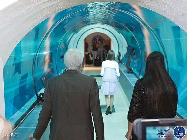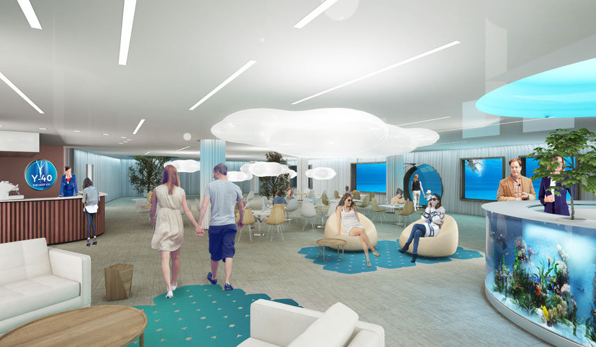 屋顶安装在阳光旁的甲板上,上面有躺椅,游泳者可以在他们的潜水体验后花费时间。意大利水上运动人物包括自由潜水员Umberto Pelizzari和意大利自由潜水的Enzo Maiorca在这次游泳池推出期间提供了帮助。自由潜水员的伊拉里亚·莫利纳里(Ilaria Molinari)使用了一个美人鱼,直到潜水到40米,以使观众惊讶。用建筑师Emanuele Boaretto的话说,“ Y-40在其领域是独一无二的,这要归功于水疗水,而水疗中心无法外包。我们想开放新的媒介和长期工作前景,以确保繁荣,不仅对我的公司,而且对周围的土地和社会。”