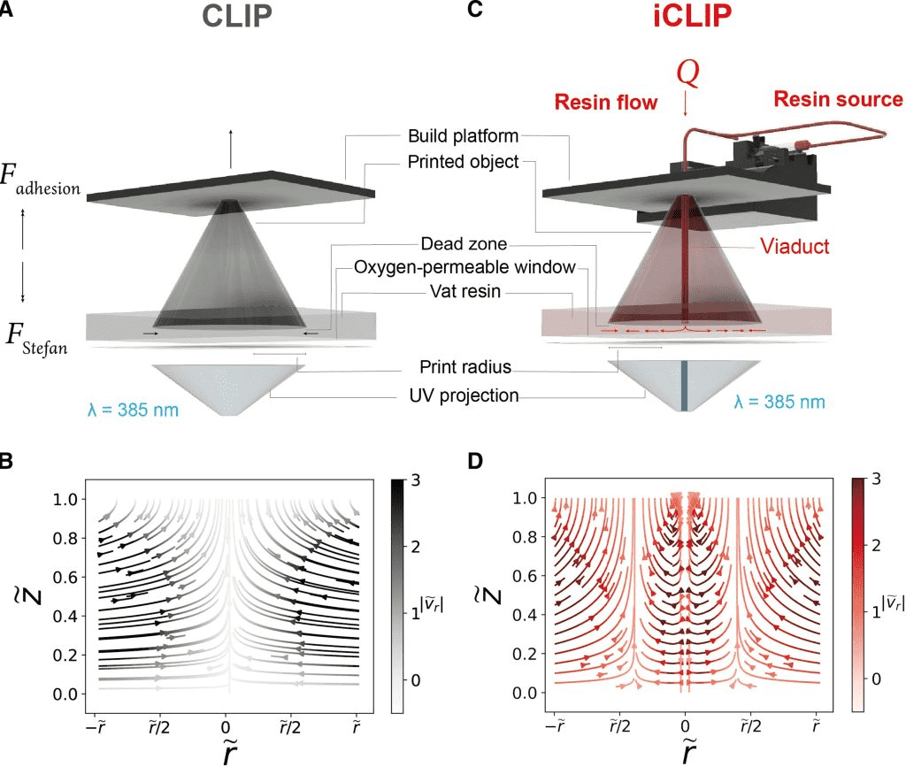 According to Gabriel Lipkowitz, who is a Ph.D. student in mechanical engineering at Stanford and the lead author of the paper, “Theresin flowin CLIP is a very passive process – you’re just pulling the object up and hoping that suction can bring material to the area where it’s needed. With this new technology, we actively inject resin onto the areas of the printer where it’s needed.” He further stated, “The ability to make objects with variegated material or mechanical properties is a holy grail of 3D printing. The applications range from very efficient energy-absorbing structures to objects with different optical properties and advanced sensors.”