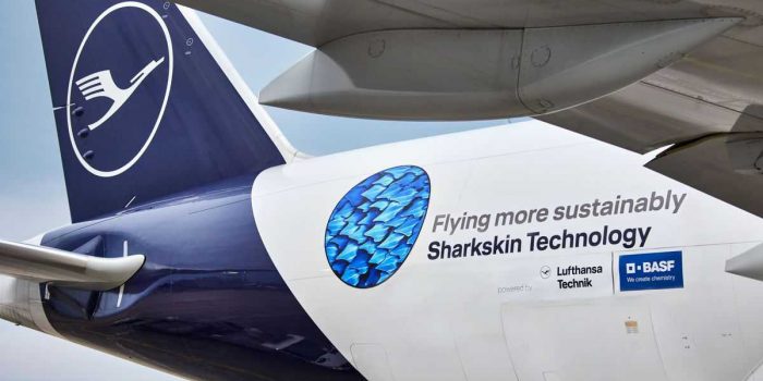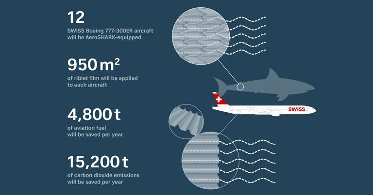 瑞士成为世界上第一个航空公司客运服务的创新AeroShark技术使用。透明AeroSHARK电影,已应用于飞机的机身和发动机短舱,模仿鲨鱼的皮肤水动力降低气动阻力,因此,降低飞行中的燃料消耗和二氧化碳排放。