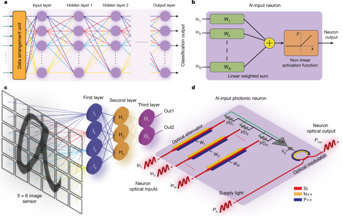 就像我们的大脑一样,芯片是由“节点”形式的神经网络组成的,其学习能力与我们的大脑运动相似,首先通过一组数据识别对象并确定0.57纳秒中的每个字符,使其能够能够以快速处理光学信息。但是,该研究的主要作者Fiooz Aflatouni,说,