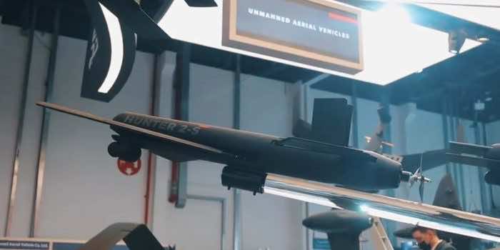 本周,无人机在2022年无人系统展览和会议上展出。这些无人机以Halcon的“猎人”无人机(uav)系列为模型,该系列无人机是EDGE集团在阿联酋建造的。
