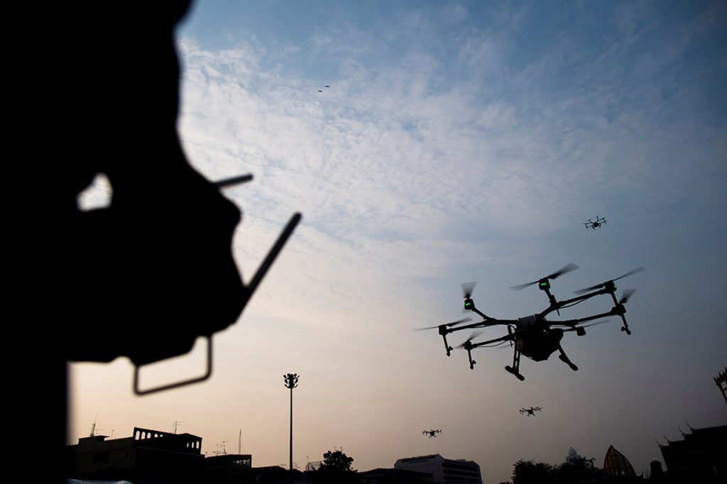 一群无人机进入战斗的目光令人着迷。但是,使用虚拟现实和语音命令可以通过单个人进行操作的想法令人震惊。
