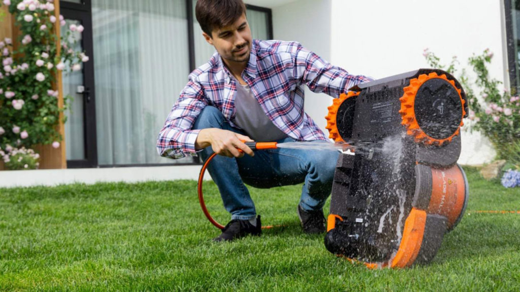 这种割草机可以承受降雨、剧烈的飞溅和高压水射流。此外,如果检测到下雨,它的雨水传感器会引导它回到充电站。它也是IPX6防水等级,所以它可以很容易地冲洗掉在必要时。