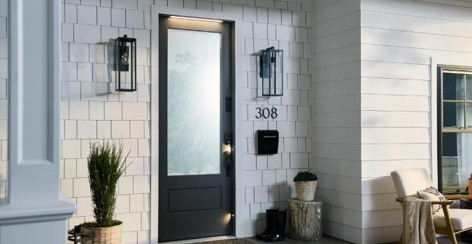 M-PWR智能门是Masonite,Ring和Yale之间的合作,是第一个将电源,照明,传感器,视频门铃和智能锁定到门系统的住宅外门。
