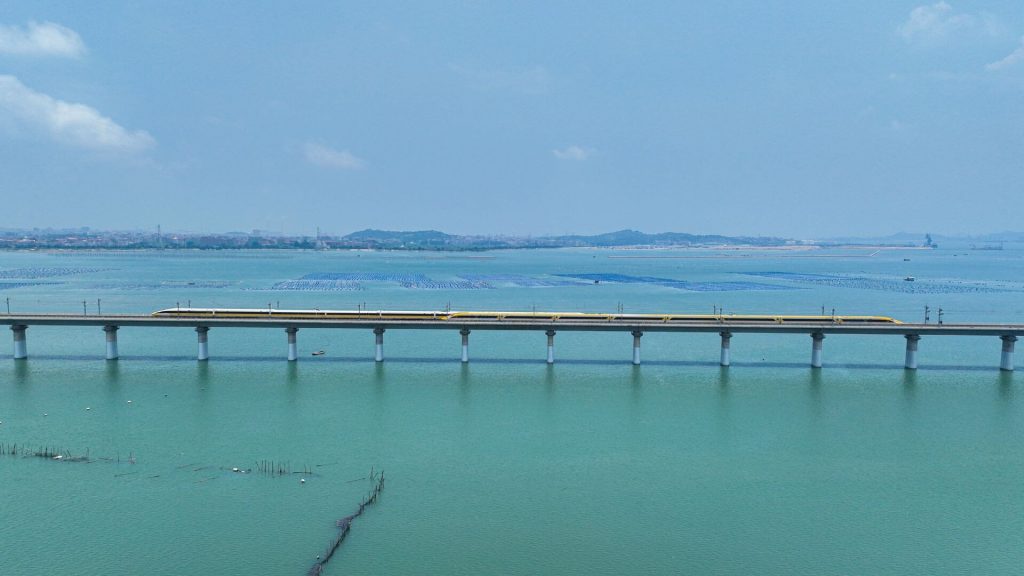 最近,中国铁路进行了测试运行CR450火车的一段网络从福清到福建泉州。测试发生在梅州湾跨海大桥,一个重要的部分陆续高速铁路横跨172英里(277公里)。在57实验进行验证的可靠性和CR450项目新技术的可行性。