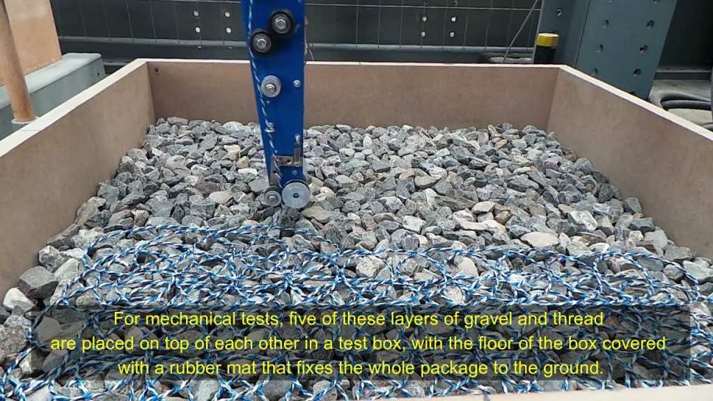 在研究项目时,团队使用了相同的字符串,该字符串用于包装废纸。为了进行预测试,研究人员放下了五层砾石,每层都由弦乐层支撑,以承受道路上的重量级人物。