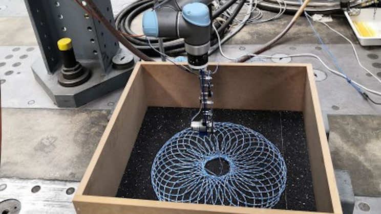来自瑞士的研究人员找到了建筑道路的新颖方式,显示了机器人手臂如何铺设绳子以将沥青束缚以增强建筑道路的可持续性。