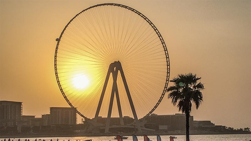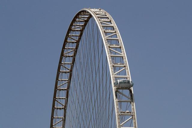 迪拜还将提供360度视图迪拜著名的地平线——阿拉伯塔酒店,玛丽娜,朱美拉棕榈岛、哈利法塔。与它的位置在蓝水岛,迪拜朱美拉海滩,海岸的还将是这一发展的皇冠上的宝石。一旦打开就会坐在旁边住宅公寓,两家酒店,高端餐馆和零售市场。车轮将能够携带1400名乘客,在其48胶囊。基地将成为一个娱乐区,和一个80米(260英尺)LED屏幕将被安装在方向盘上创建一个电子平台,广播、广告、和其他信息。48胶囊每次可搭载40名乘客,也可以转化为提供“胶囊”餐厅。还有6个专用贵宾胶囊这意味着这种吸引力将成为所有场合的场所。