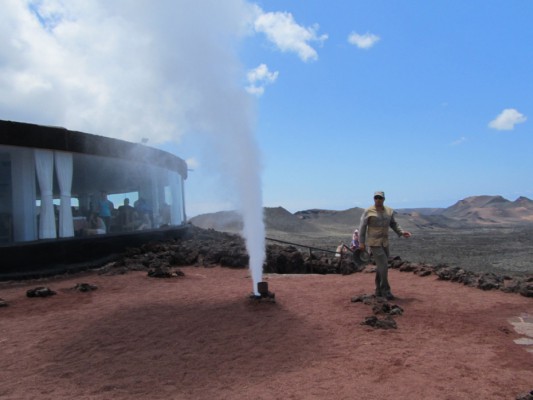 烧烤架的建造在一个熔岩池的上方约6英尺,该熔岩在400摄氏度的气泡中起泡。Timanfaya火山最后一次爆发于1824年,此后一直处于休眠状态。执行的一个很棒的商业想法,您不是这样说吗?