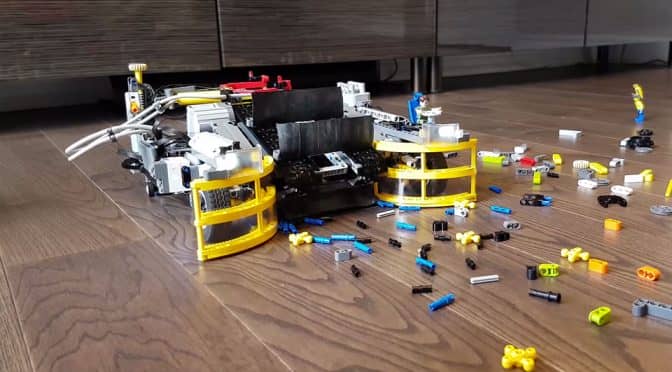 吸尘器本身由乐高积木组成,依靠输送带清扫系统将乐高从地板上扫到平台上。它可以处理所有的乐高部件,并有一个特殊的机械臂来处理更大的部件,如轮胎。虽然它不是自动的,但开着机器人清理地板上的乐高积木本身就很有趣,而且你也不用对你的孩子大喊大叫。