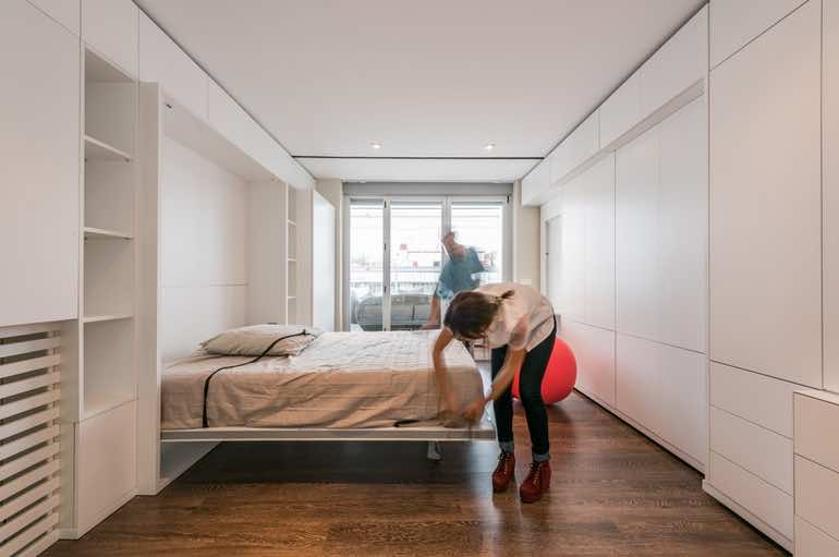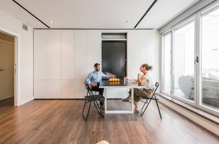 那些住在小房子或公寓里的人完全知道接待客人的问题。拥有一间专门的客房根本是不可行的,因为它占用了日常家务所需的空间。尽管如此,你不能让客人睡在沙发上,这就是PKMN架构的作用。yabo168vip com通过最近完成的Casa Stella项目,它为客户提供了两全其美的服务。它有一面可移动的墙,只需在半分钟内按下按钮,就可以创建一个客房。