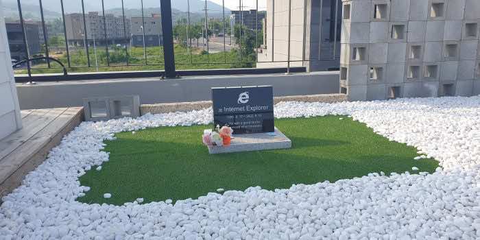 为了展示一种历史性的决心,并纪念这位ie的离去,职业是软件工程师的Jung Ki-young花了43万韩元(330美元)设计了ie的墓碑。ie“e”的标志被漂亮地刻在石头上,上面刻着“他是下载其他浏览器的好工具”。毫无疑问,以一种类似人类的方式哀悼技术的消亡是一件不同寻常的事情。荣格表示,这样做的目的是为了让人们发笑,但他并不知道这张照片会走红。